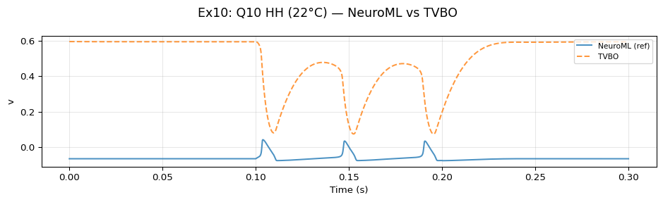 title= "Ex10: Q10 HH (22°C) — NeuroML vs TVBO" ,