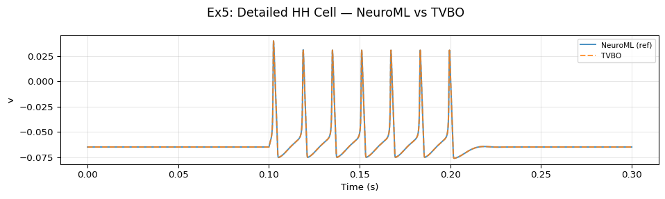 title= "Ex5: Detailed HH Cell — NeuroML vs TVBO" ,