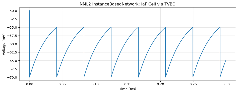 ax.set_title("NML2 InstanceBasedNetwork: IaF Cell via TVBO")