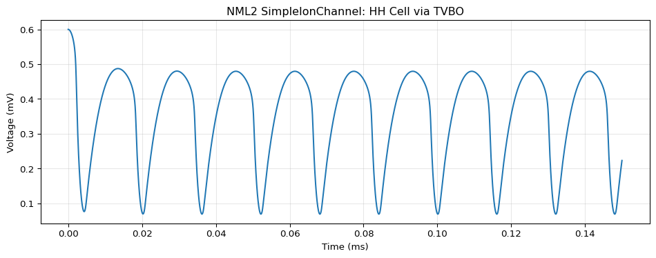 ax.set_title("NML2 SimpleIonChannel: HH Cell via TVBO")