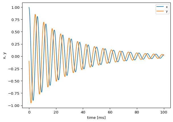 Simple 2D oscillator for testing. The model comprises 2 state variables.