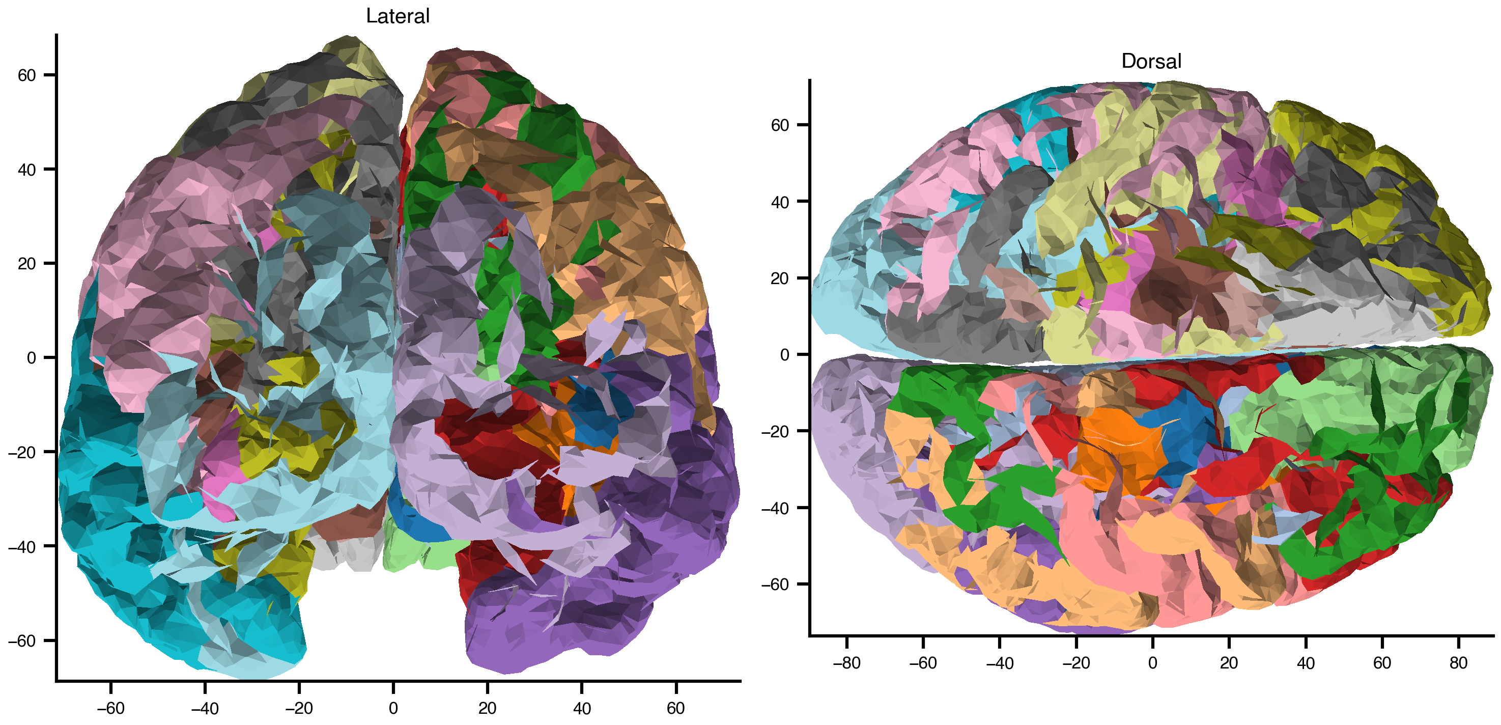 view='dorsal', cmap='tab20', parcellated=True, ax=axes[1],