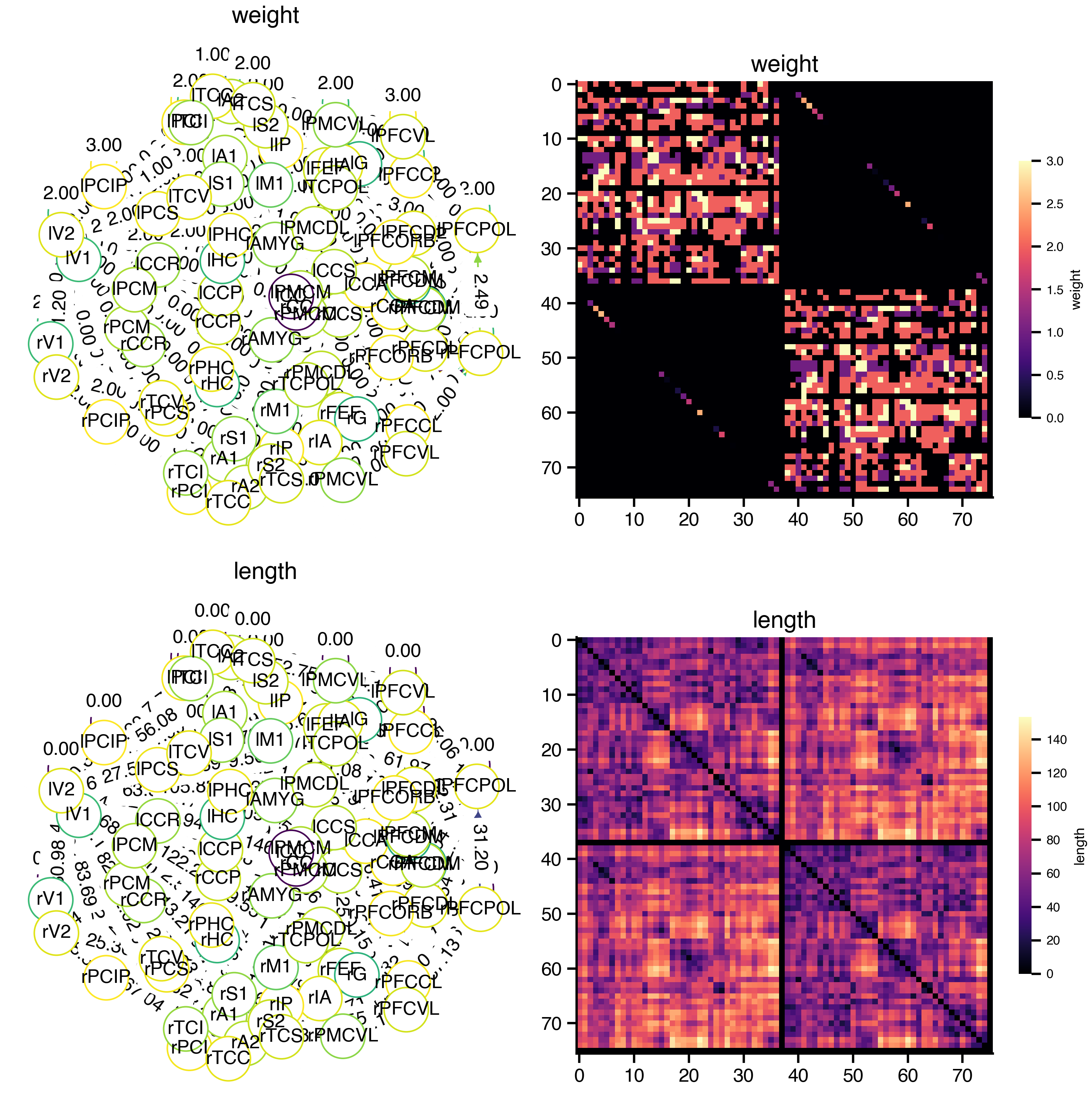 print(f"Lengths range: [{net.lengths_matrix.min():.1f}, {net.lengths_matrix.max():.1f}] mm")tvbo: 76 nodes
