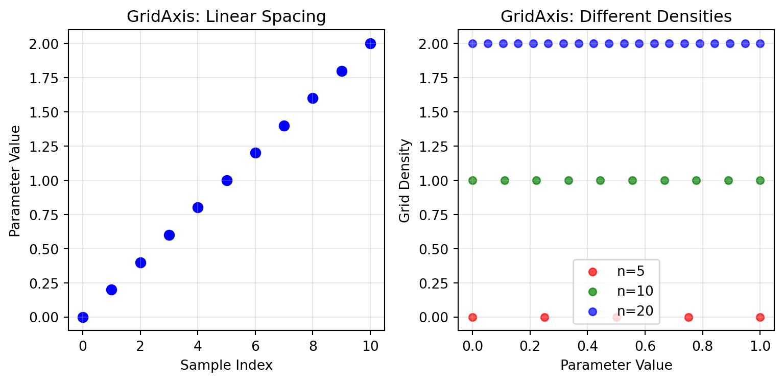 GridAxis provides systematic, deterministic sampling across parameter ranges. Perfect for sensitivity analysis and systematic exploration.