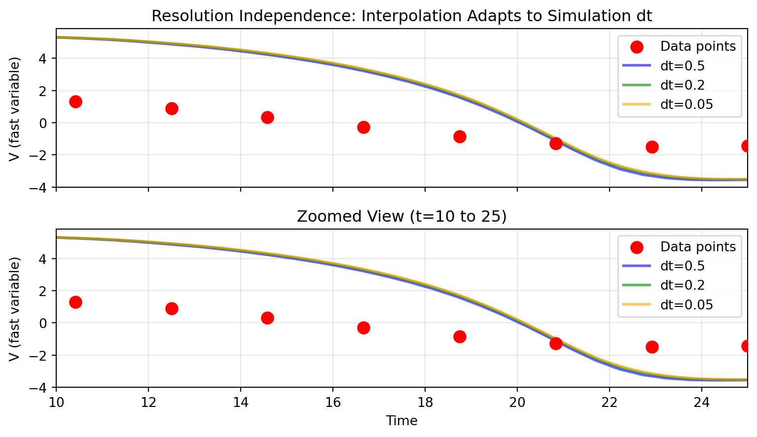 ax1.set_title('Resolution Independence: Interpolation Adapts to Simulation dt')